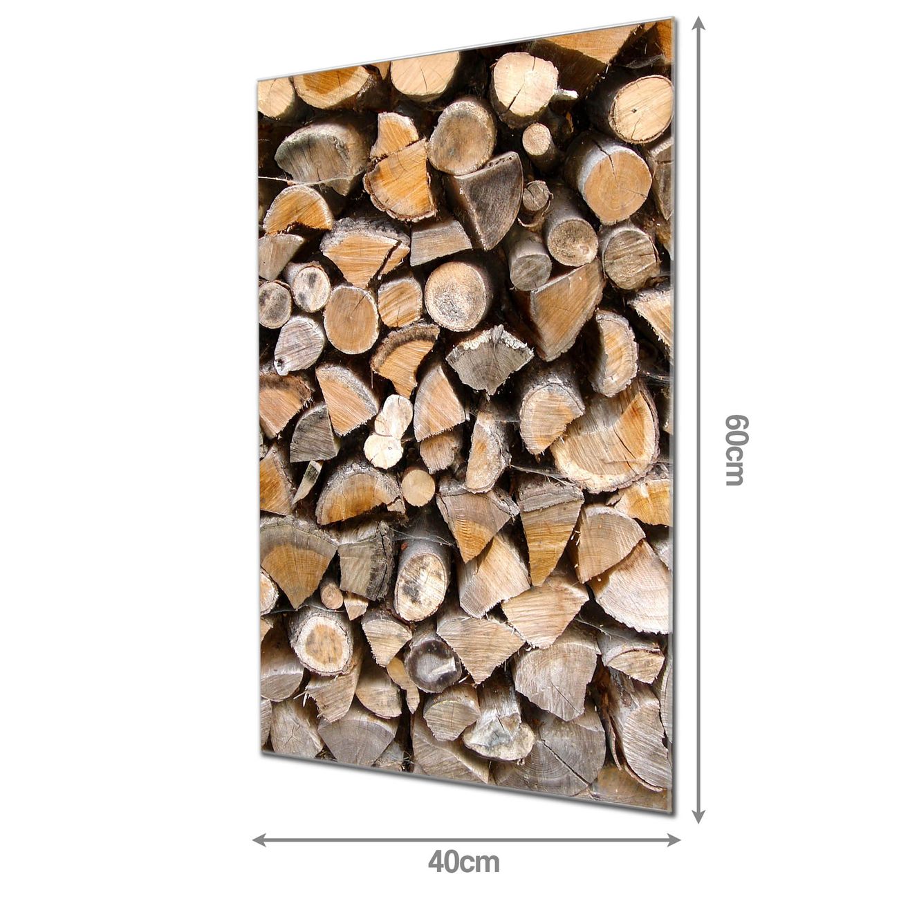 Material: 4mm Sicherheitsglas mit Metallrückwand Eigenschaften: beschreibbar, magnetisch, kratzfest Maße: 40x60x0,6cm, 3,60 kg schwer Motiv Nummer 10141 Holzstapel Zubehör: inklusive 4 Neodym-Magnete