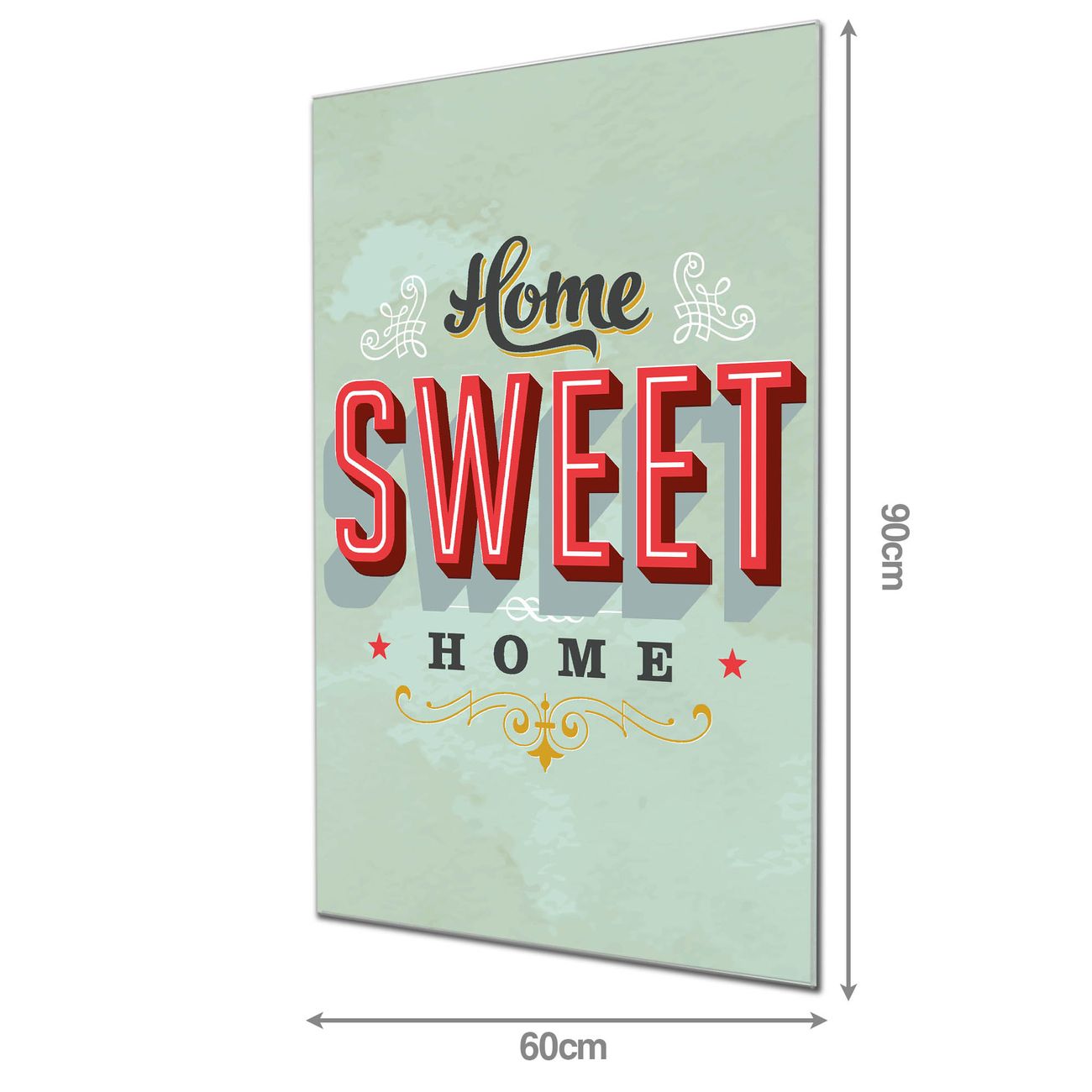 Material  4mm Sicherheitsglas mit Metallrückwand Eigenschaften  beschreibbar, magnetisch, kratzfest Maße  60x90x0,6cm, 8,10 kg schwer Motiv  Nummer 10732 Home Sweet Home Zubehör  inklusive 4 Neodym-Magnete