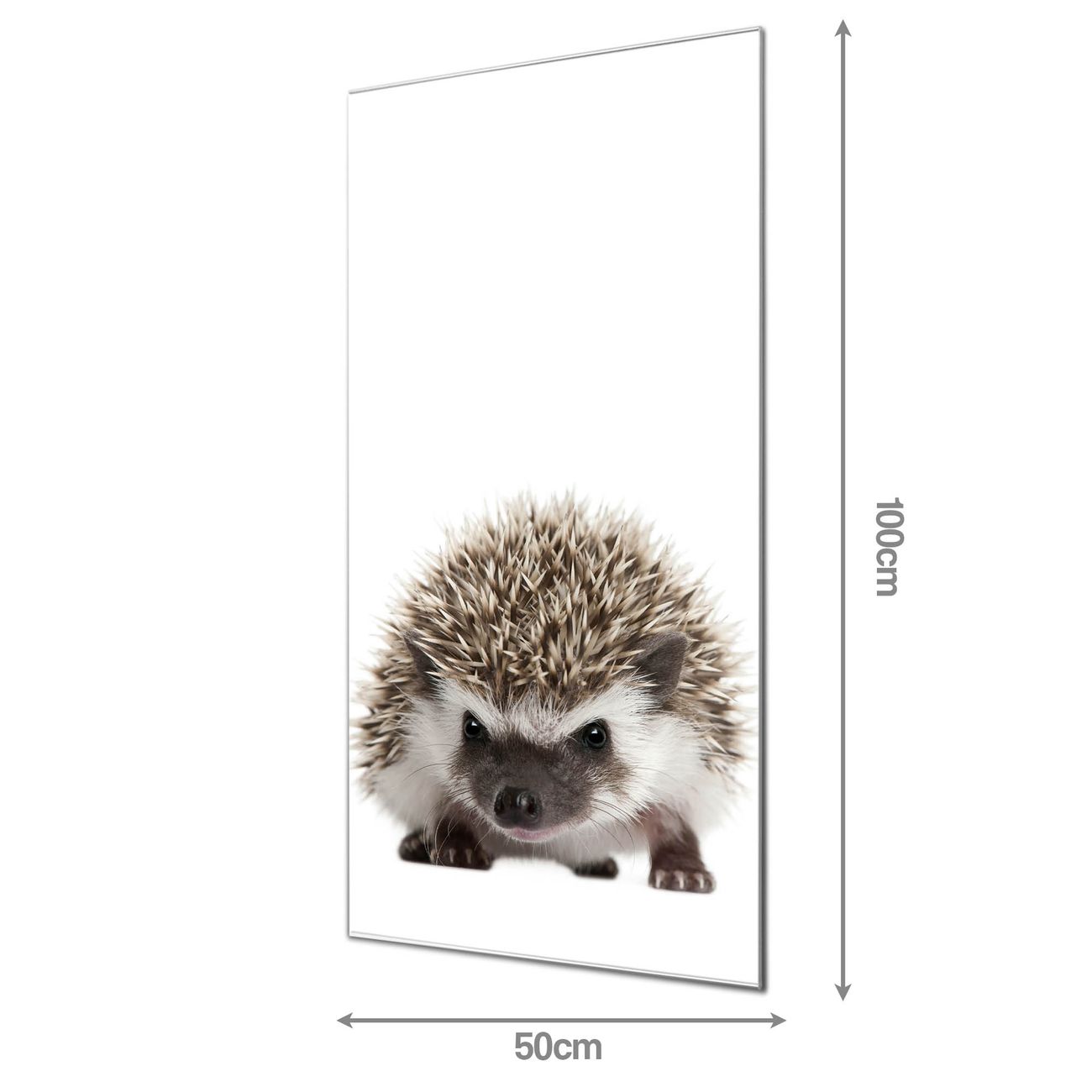 Material: 4mm Sicherheitsglas mit Metallrückwand Eigenschaften: beschreibbar, magnetisch, kratzfest Maße: 50x100x0,6cm, 7,50 kg schwer Motiv Nummer 10202 Igel Zubehör: inklusive 4 Neodym-Magnete