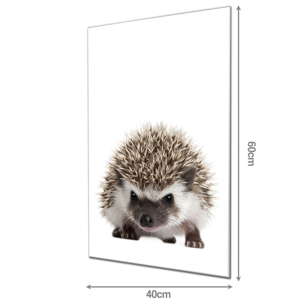 Material: 4mm Sicherheitsglas mit Metallrückwand Eigenschaften: beschreibbar, magnetisch, kratzfest Maße: 40x60x0,6cm, 3,60 kg schwer Motiv Nummer 10202 Igel Zubehör: inklusive 4 Neodym-Magnete