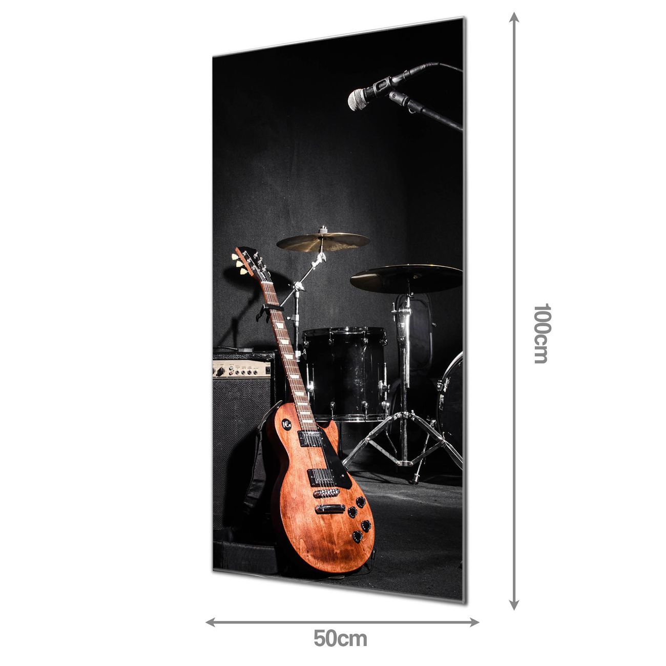 Material: 4mm Sicherheitsglas mit Metallrückwand Eigenschaften: beschreibbar, magnetisch, kratzfest Maße: 50x100x0,6cm, 7,50 kg schwer Motiv Nummer 11224 Jam Session Zubehör: inklusive 4 Neodym-Magnete