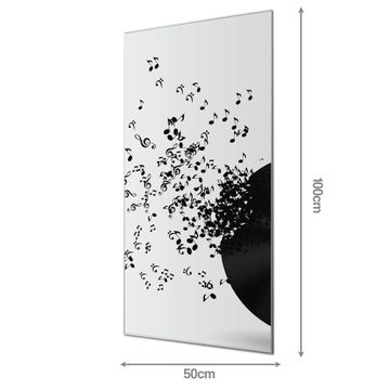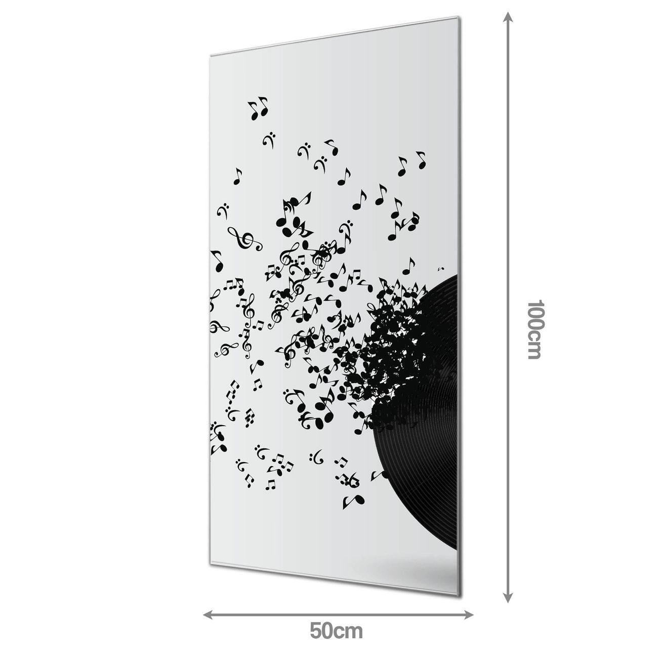 Material: 4mm Sicherheitsglas mit Metallrückwand Eigenschaften: beschreibbar, magnetisch, kratzfest Maße: 50x100x0,6cm, 7,50 kg schwer Motiv Nummer 10730 Juke Box Zubehör: inklusive 4 Neodym-Magnete