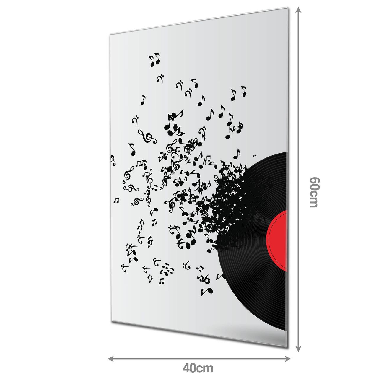 Material: 4mm Sicherheitsglas mit Metallrückwand Eigenschaften: beschreibbar, magnetisch, kratzfest Maße: 40x60x0,6cm, 3,60 kg schwer Motiv Nummer 10730 Juke Box Zubehör: inklusive 4 Neodym-Magnete