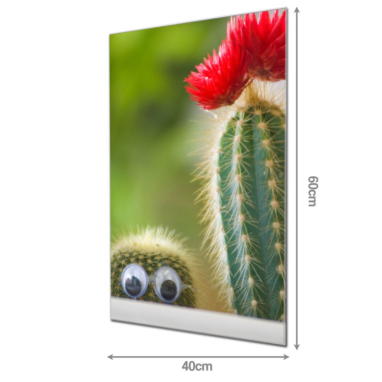Material: 4mm Sicherheitsglas mit Metallrückwand Eigenschaften: beschreibbar, magnetisch, kratzfest Maße: 40x60x0,6cm, 3,60 kg schwer Motiv Nummer 10229 Kakteen Zubehör: inklusive 4 Neodym-Magnete
