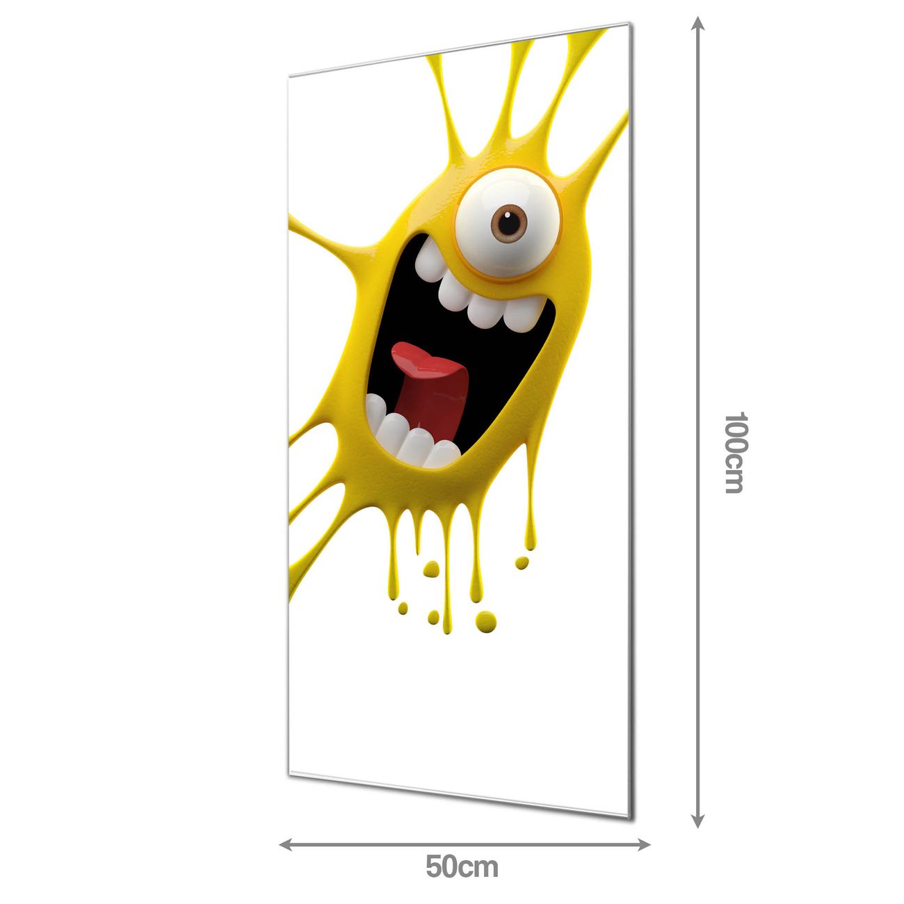 Material: 4mm Sicherheitsglas mit Metallrückwand Eigenschaften: beschreibbar, magnetisch, kratzfest Maße: 50x100x0,6cm, 7,50 kg schwer Motiv Nummer 10815 Karl Splash Zubehör: inklusive 4 Neodym-Magnete