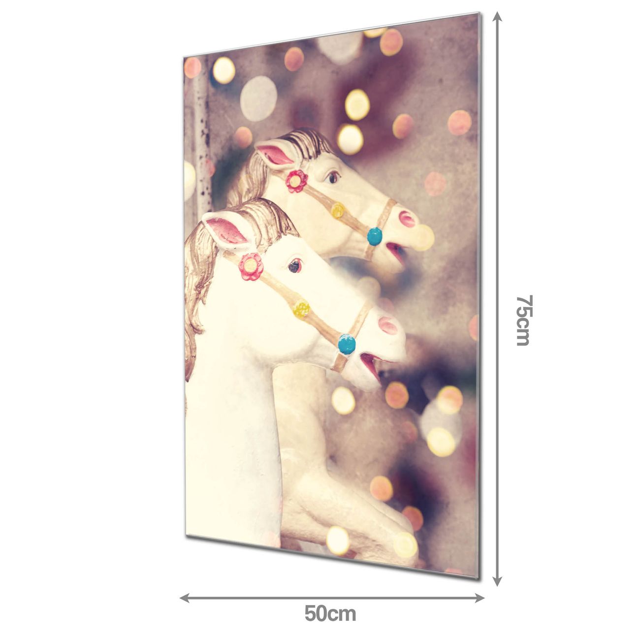 Material: 4mm Sicherheitsglas mit Metallrückwand Eigenschaften: beschreibbar, magnetisch, kratzfest Maße: 50x75x0,6cm, 5,63 kg schwer Motiv Nummer 12493 Kinderkarussell Zubehör: inklusive 4 Neodym-Magnete