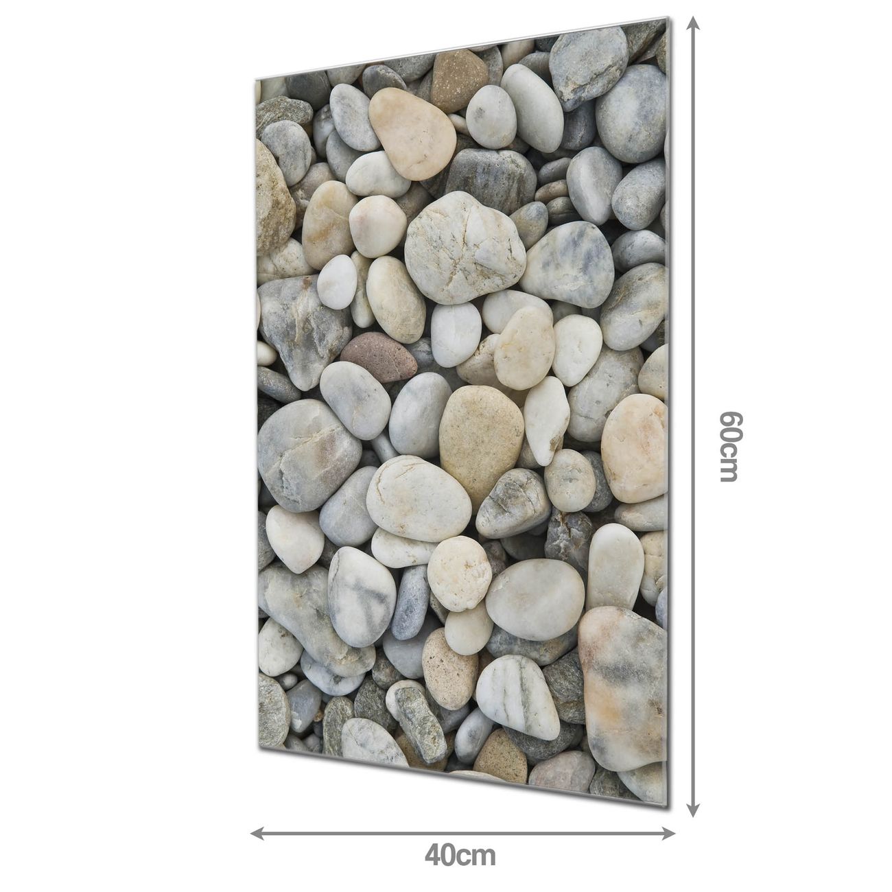 Material: 4mm Sicherheitsglas mit Metallrückwand Eigenschaften: beschreibbar, magnetisch, kratzfest Maße: 40x60x0,6cm, 3,60 kg schwer Motiv Nummer 10169 Kieselsteine Zubehör: inklusive 4 Neodym-Magnete