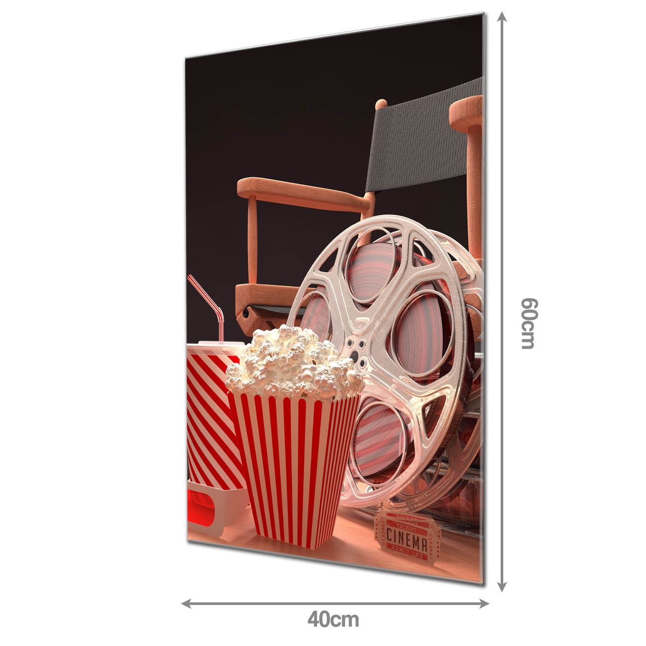 Material: 4mm Sicherheitsglas mit Metallrückwand Eigenschaften: beschreibbar, magnetisch, kratzfest Maße: 40x60x0,6cm, 3,60 kg schwer Motiv Nummer 10562 Kino Zubehör: inklusive 4 Neodym-Magnete