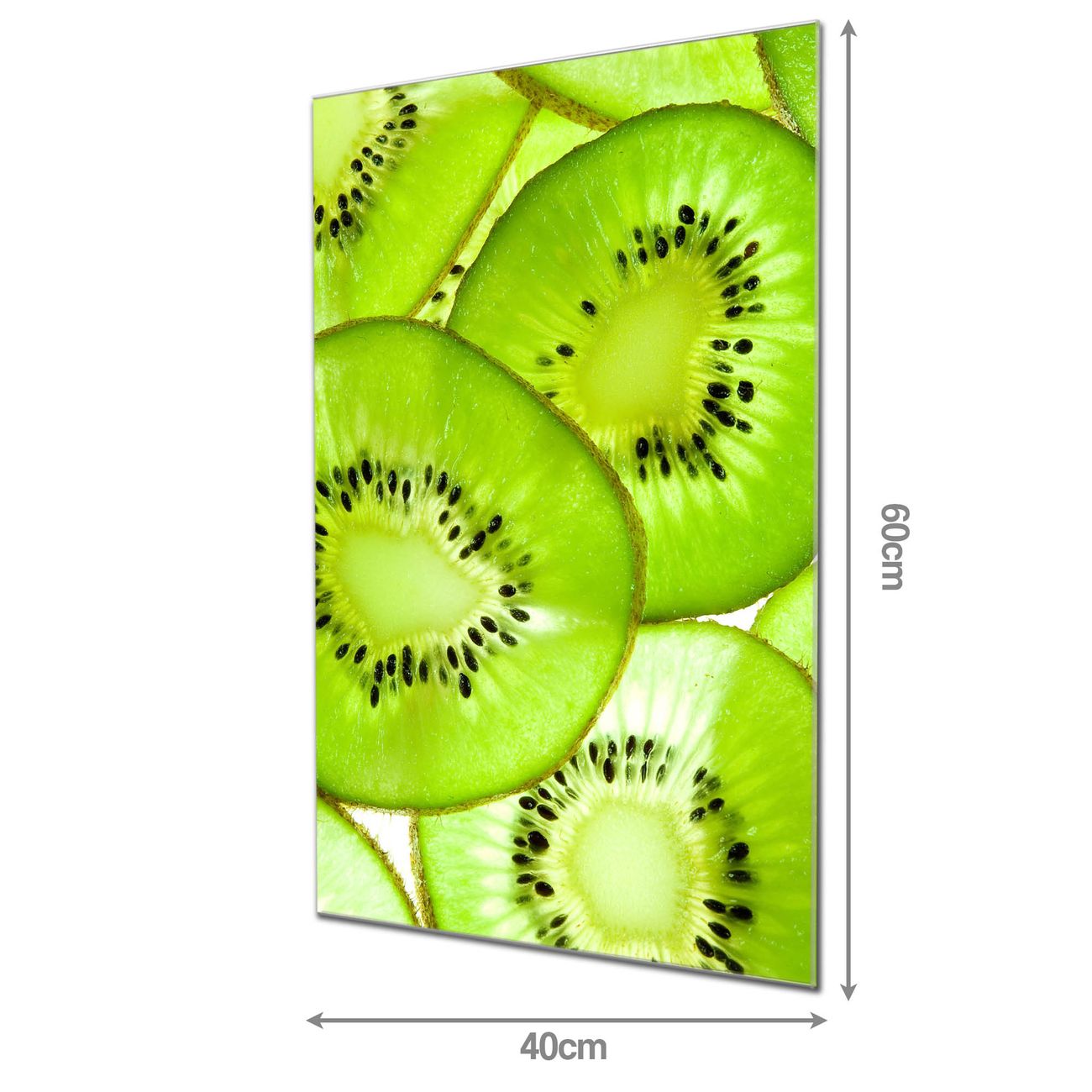 Material: 4mm Sicherheitsglas mit Metallrückwand Eigenschaften: beschreibbar, magnetisch, kratzfest Maße: 40x60x0,6cm, 3,60 kg schwer Motiv Nummer 11725 Kiwi Zubehör: inklusive 4 Neodym-Magnete