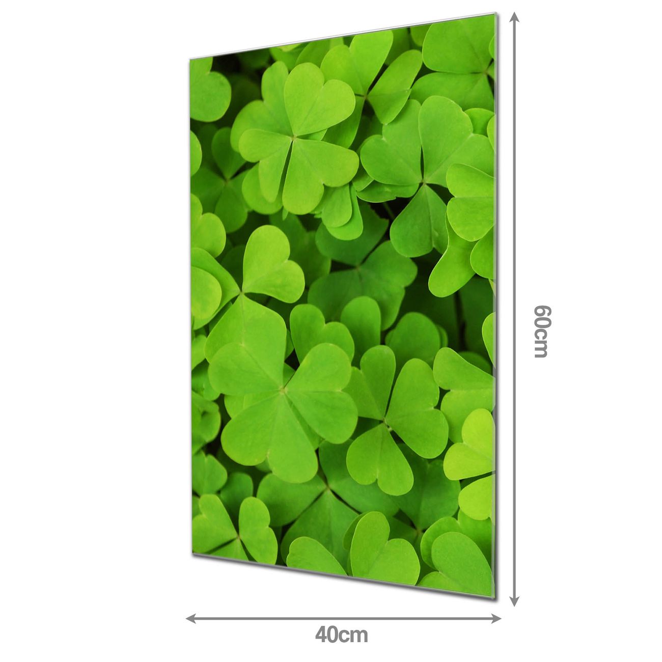 Material: 4mm Sicherheitsglas mit Metallrückwand Eigenschaften: beschreibbar, magnetisch, kratzfest Maße: 40x60x0,6cm, 3,60 kg schwer Motiv Nummer 10049 Klee Zubehör: inklusive 4 Neodym-Magnete