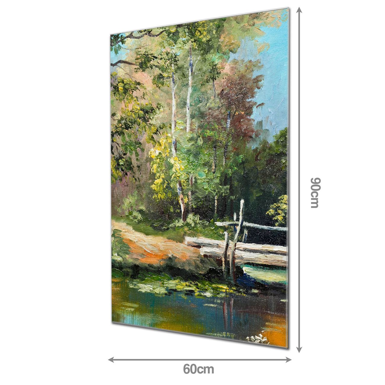 Material  4mm Sicherheitsglas mit Metallrückwand Eigenschaften  beschreibbar, magnetisch, kratzfest Maße  60x90x0,6cm, 8,10 kg schwer Motiv  Nummer 12353 Kleine Brücke Zubehör  inklusive 4 Neodym-Magnete