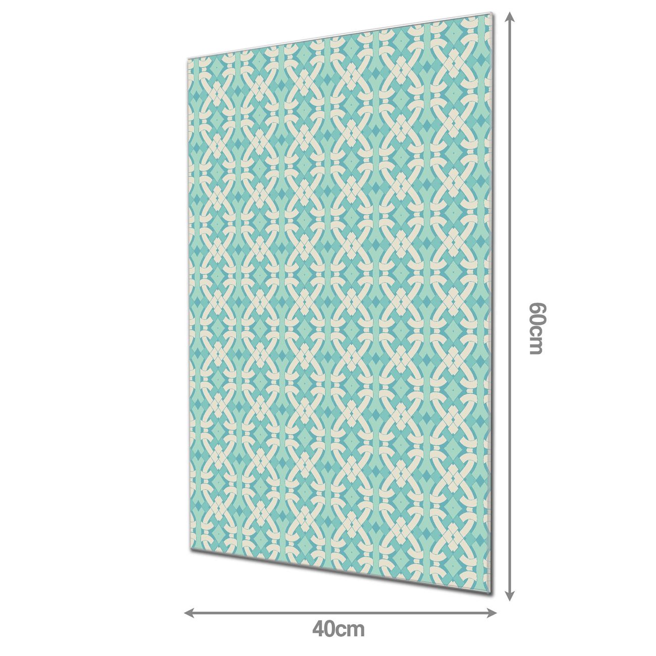 Material: 4mm Sicherheitsglas mit Metallrückwand Eigenschaften: beschreibbar, magnetisch, kratzfest Maße: 40x60x0,6cm, 3,60 kg schwer Motiv Nummer 11872 Knoten Türkis Zubehör: inklusive 4 Neodym-Magnete