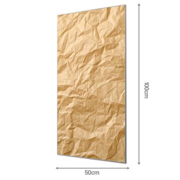 Material: 4mm Sicherheitsglas mit Metallrückwand Eigenschaften: beschreibbar, magnetisch, kratzfest Maße: 50x100x0,6cm, 7,50 kg schwer Motiv Nummer 11449 Knüllpapier Zubehör: inklusive 4 Neodym-Magnete