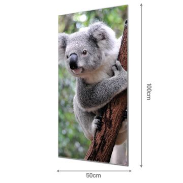 Material: 4mm Sicherheitsglas mit Metallrückwand Eigenschaften: beschreibbar, magnetisch, kratzfest Maße: 50x100x0,6cm, 7,50 kg schwer Motiv Nummer 10224 Koala Zubehör: inklusive 4 Neodym-Magnete