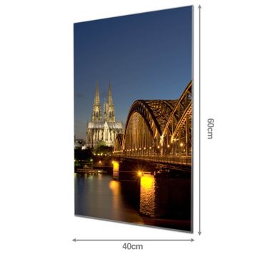 Material: 4mm Sicherheitsglas mit Metallrückwand Eigenschaften: beschreibbar, magnetisch, kratzfest Maße: 40x60x0,6cm, 3,60 kg schwer Motiv Nummer 10135 Köln Zubehör: inklusive 4 Neodym-Magnete