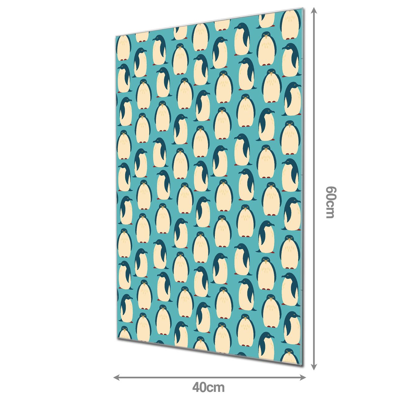 Material: 4mm Sicherheitsglas mit Metallrückwand Eigenschaften: beschreibbar, magnetisch, kratzfest Maße: 40x60x0,6cm, 3,60 kg schwer Motiv Nummer 11619 Königspinguine Zubehör: inklusive 4 Neodym-Magnete