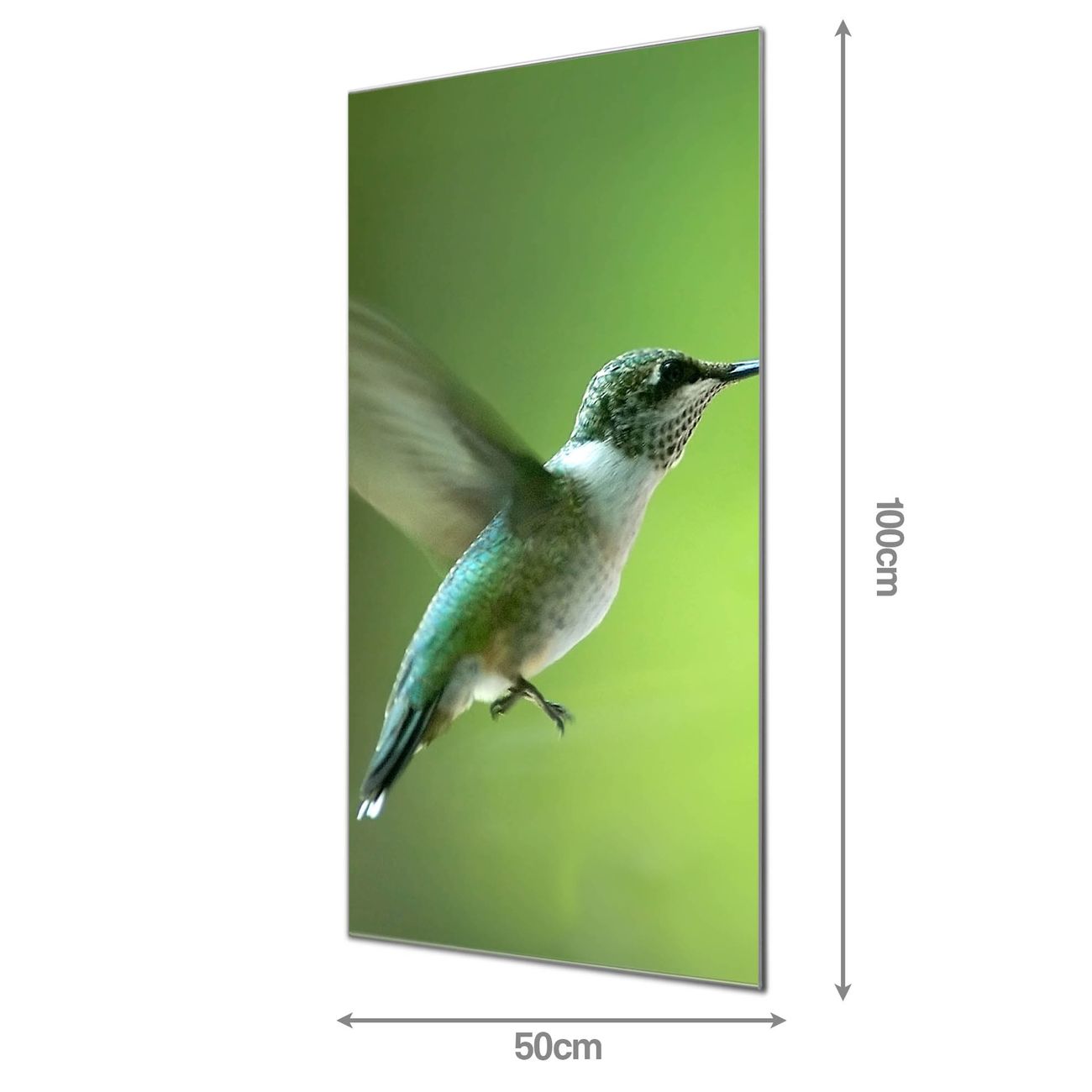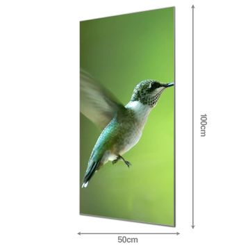 Material: 4mm Sicherheitsglas mit Metallrückwand Eigenschaften: beschreibbar, magnetisch, kratzfest Maße: 50x100x0,6cm, 7,50 kg schwer Motiv Nummer 10103 Kolibri Zubehör: inklusive 4 Neodym-Magnete