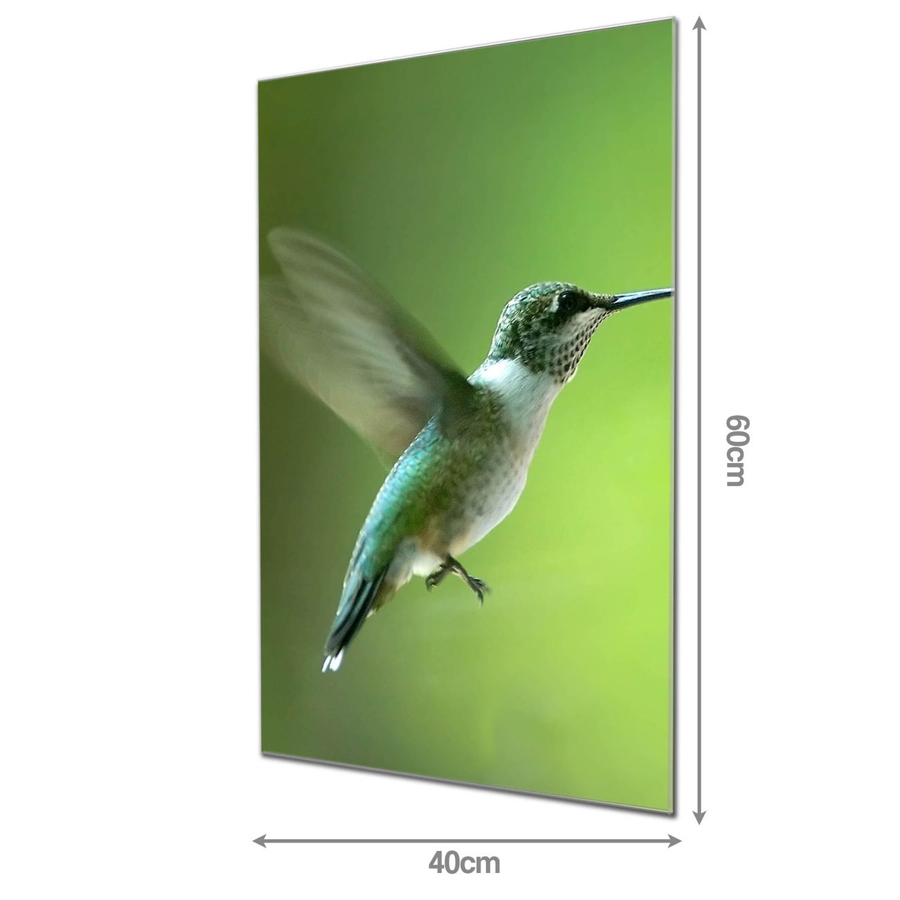 Material: 4mm Sicherheitsglas mit Metallrückwand Eigenschaften: beschreibbar, magnetisch, kratzfest Maße: 40x60x0,6cm, 3,60 kg schwer Motiv Nummer 10103 Kolibri Zubehör: inklusive 4 Neodym-Magnete