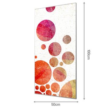 Material: 4mm Sicherheitsglas mit Metallrückwand Eigenschaften: beschreibbar, magnetisch, kratzfest Maße: 50x100x0,6cm, 7,50 kg schwer Motiv Nummer 10367 Kreise Zubehör: inklusive 4 Neodym-Magnete