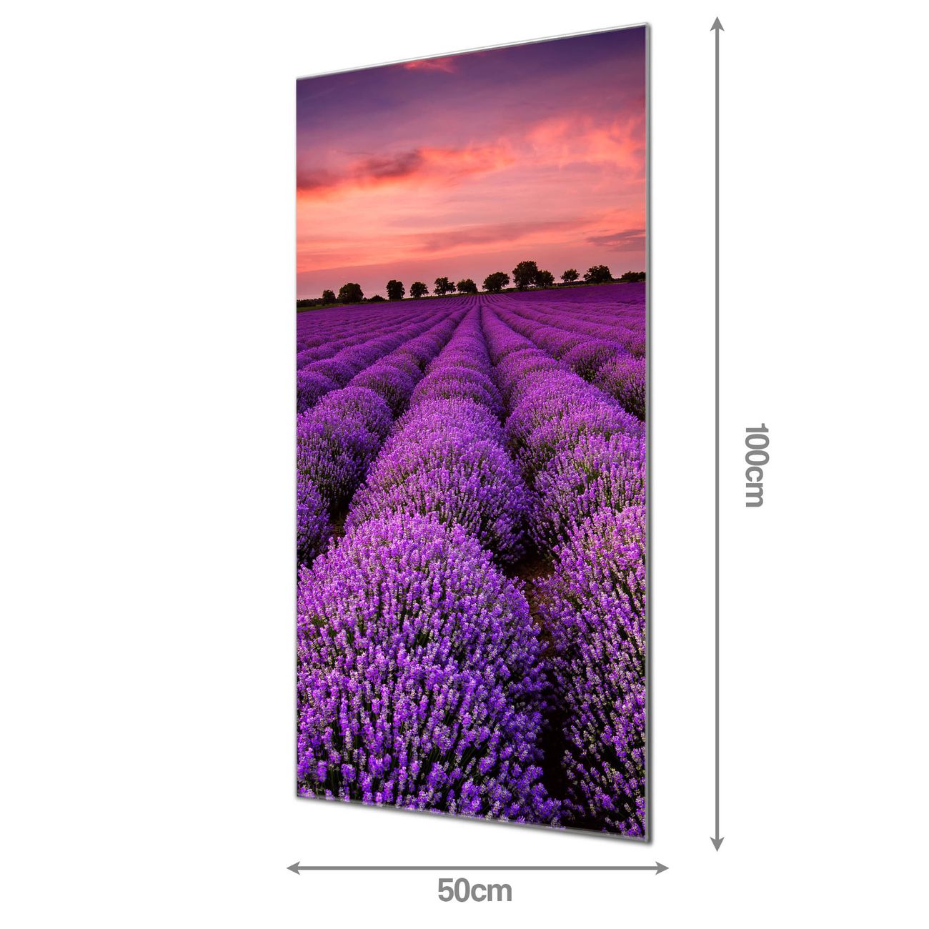 Material: 4mm Sicherheitsglas mit Metallrückwand Eigenschaften: beschreibbar, magnetisch, kratzfest Maße: 50x100x0,6cm, 7,50 kg schwer Motiv Nummer 12678 Lavendelfeld Zubehör: inklusive 4 Neodym-Magnete