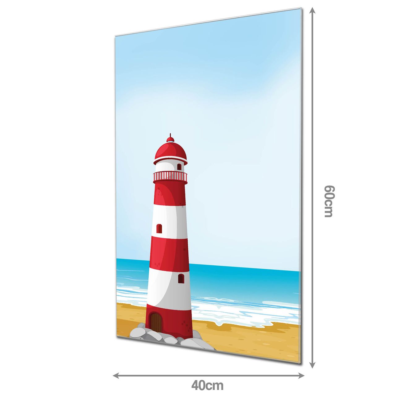 Material: 4mm Sicherheitsglas mit Metallrückwand Eigenschaften: beschreibbar, magnetisch, kratzfest Maße: 40x60x0,6cm, 3,60 kg schwer Motiv Nummer 11243 Leuchtturm Illustration Zubehör: inklusive 4 Neodym-Magnete