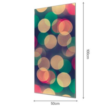 Material: 4mm Sicherheitsglas mit Metallrückwand Eigenschaften: beschreibbar, magnetisch, kratzfest Maße: 50x100x0,6cm, 7,50 kg schwer Motiv Nummer 11676 Lichtpunkte Weiß Grün Rot Zubehör: inklusive 4 Neodym-Magnete