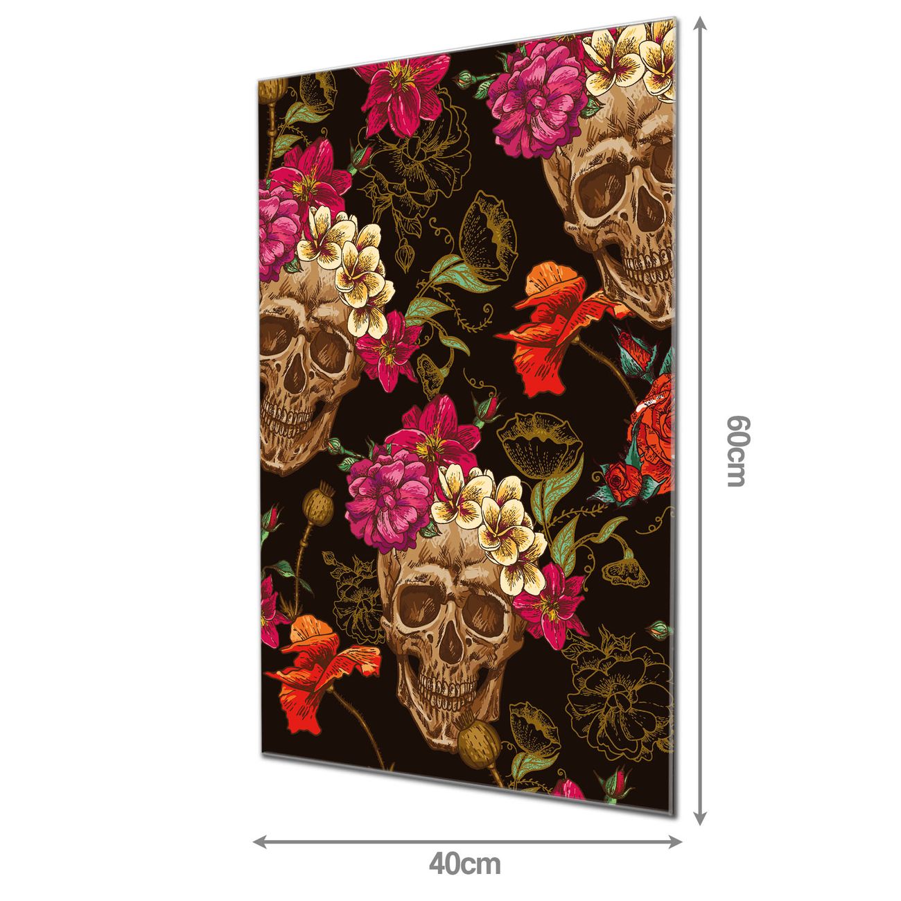 Material: 4mm Sicherheitsglas mit Metallrückwand Eigenschaften: beschreibbar, magnetisch, kratzfest Maße: 40x60x0,6cm, 3,60 kg schwer Motiv Nummer 12509 Los Dias de Muertos Zubehör: inklusive 4 Neodym-Magnete