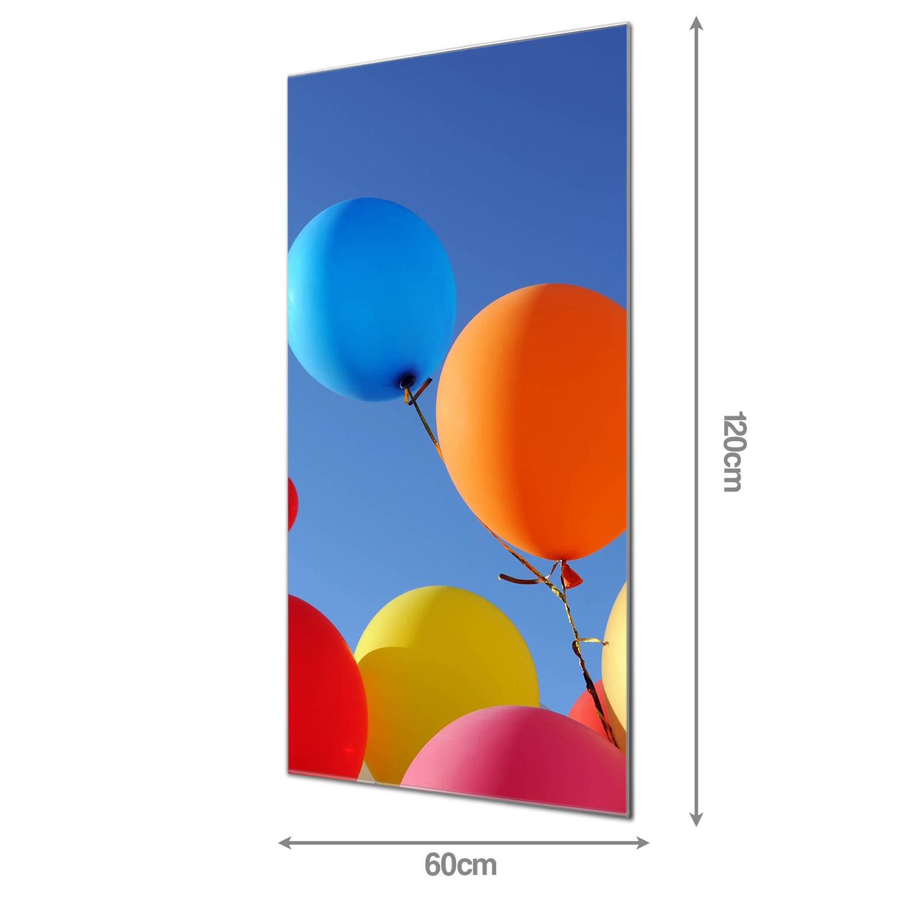 Material: 4mm Sicherheitsglas mit Metallrückwand Eigenschaften: beschreibbar, magnetisch, kratzfest Maße: 60x120x0,6cm, 10,80 kg schwer Motiv Nummer 10276 Luftballons Zubehör: inklusive 4 Neodym-Magnete