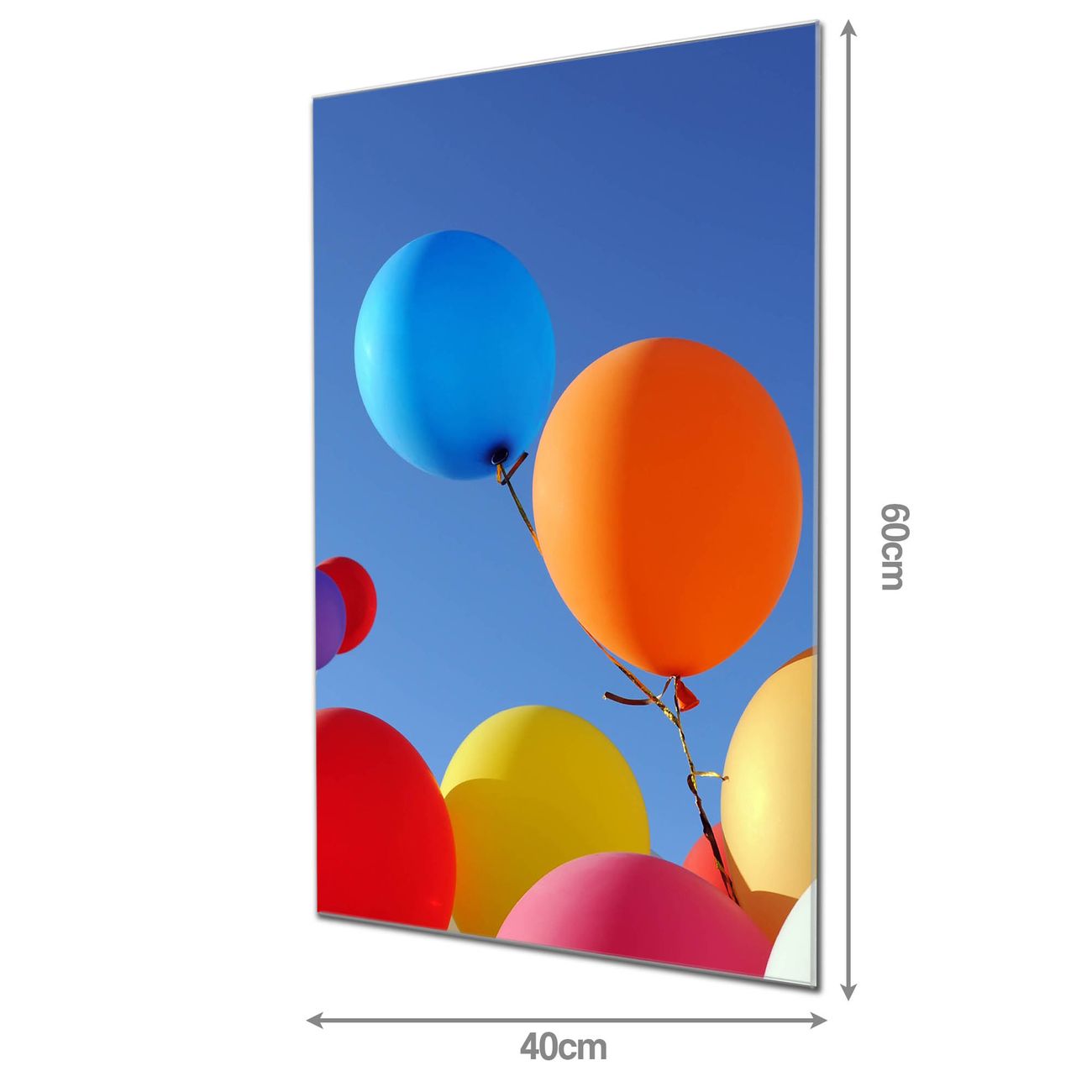 Material: 4mm Sicherheitsglas mit Metallrückwand Eigenschaften: beschreibbar, magnetisch, kratzfest Maße: 40x60x0,6cm, 3,60 kg schwer Motiv Nummer 10276 Luftballons Zubehör: inklusive 4 Neodym-Magnete