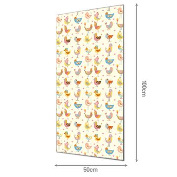 Material: 4mm Sicherheitsglas mit Metallrückwand Eigenschaften: beschreibbar, magnetisch, kratzfest Maße: 50x100x0,6cm, 7,50 kg schwer Motiv Nummer 11543 Lustige Vögel Zubehör: inklusive 4 Neodym-Magnete