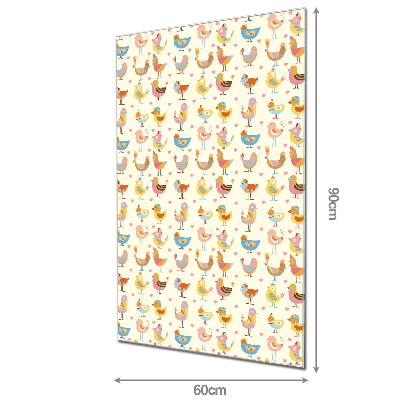 Material  4mm Sicherheitsglas mit Metallrückwand Eigenschaften  beschreibbar, magnetisch, kratzfest Maße  60x90x0,6cm, 8,10 kg schwer Motiv  Nummer 11543 Lustige Vögel Zubehör  inklusive 4 Neodym-Magnete