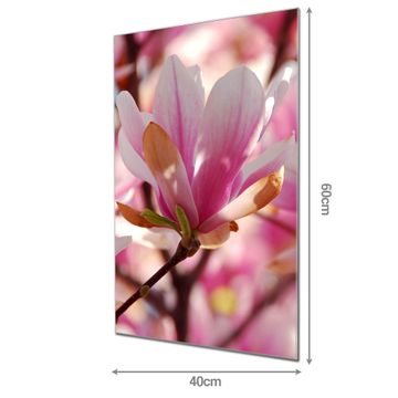 Material: 4mm Sicherheitsglas mit Metallrückwand Eigenschaften: beschreibbar, magnetisch, kratzfest Maße: 40x60x0,6cm, 3,60 kg schwer Motiv Nummer 10407 Magnolia Zubehör: inklusive 4 Neodym-Magnete