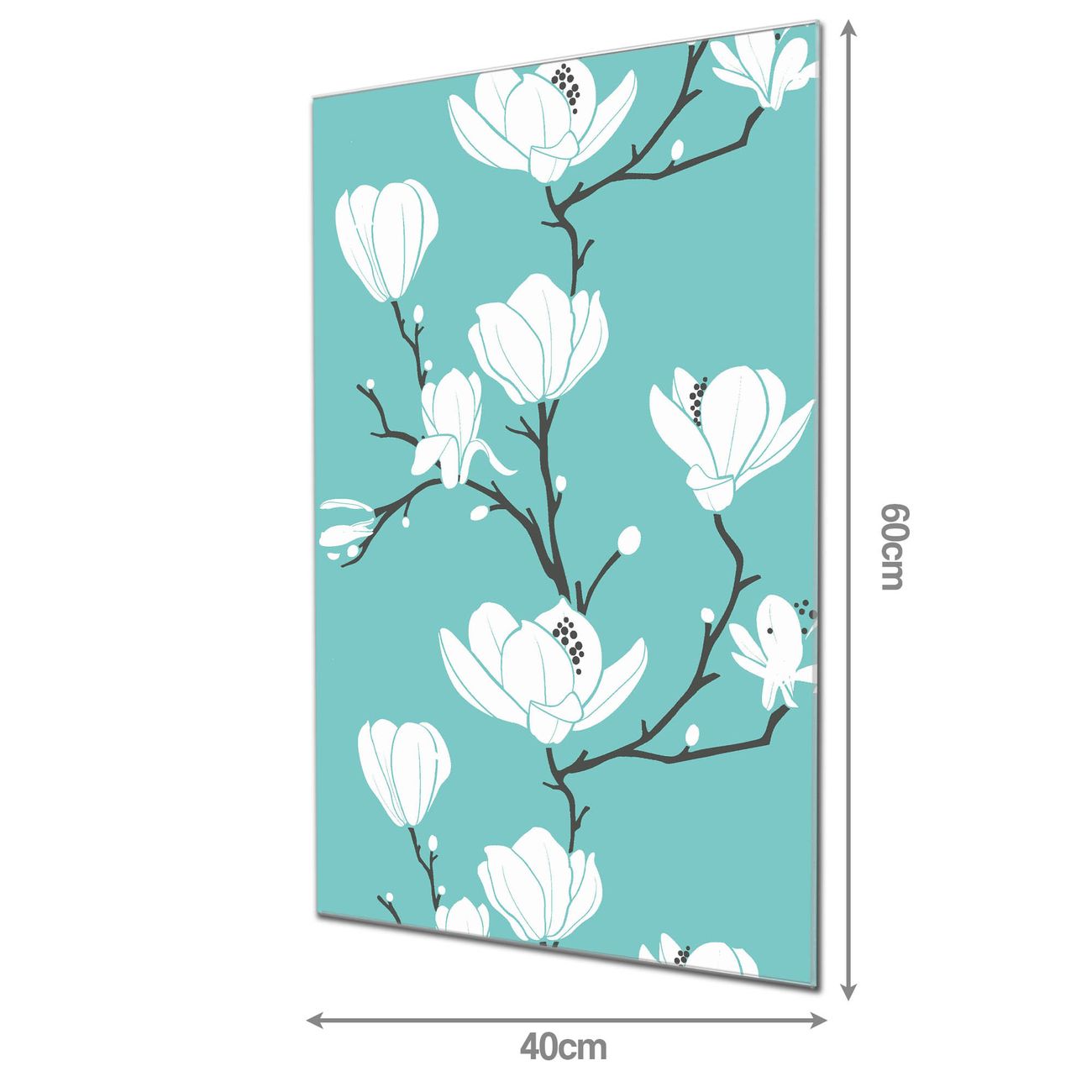 Material: 4mm Sicherheitsglas mit Metallrückwand Eigenschaften: beschreibbar, magnetisch, kratzfest Maße: 40x60x0,6cm, 3,60 kg schwer Motiv Nummer 10339 Magnolien Zubehör: inklusive 4 Neodym-Magnete