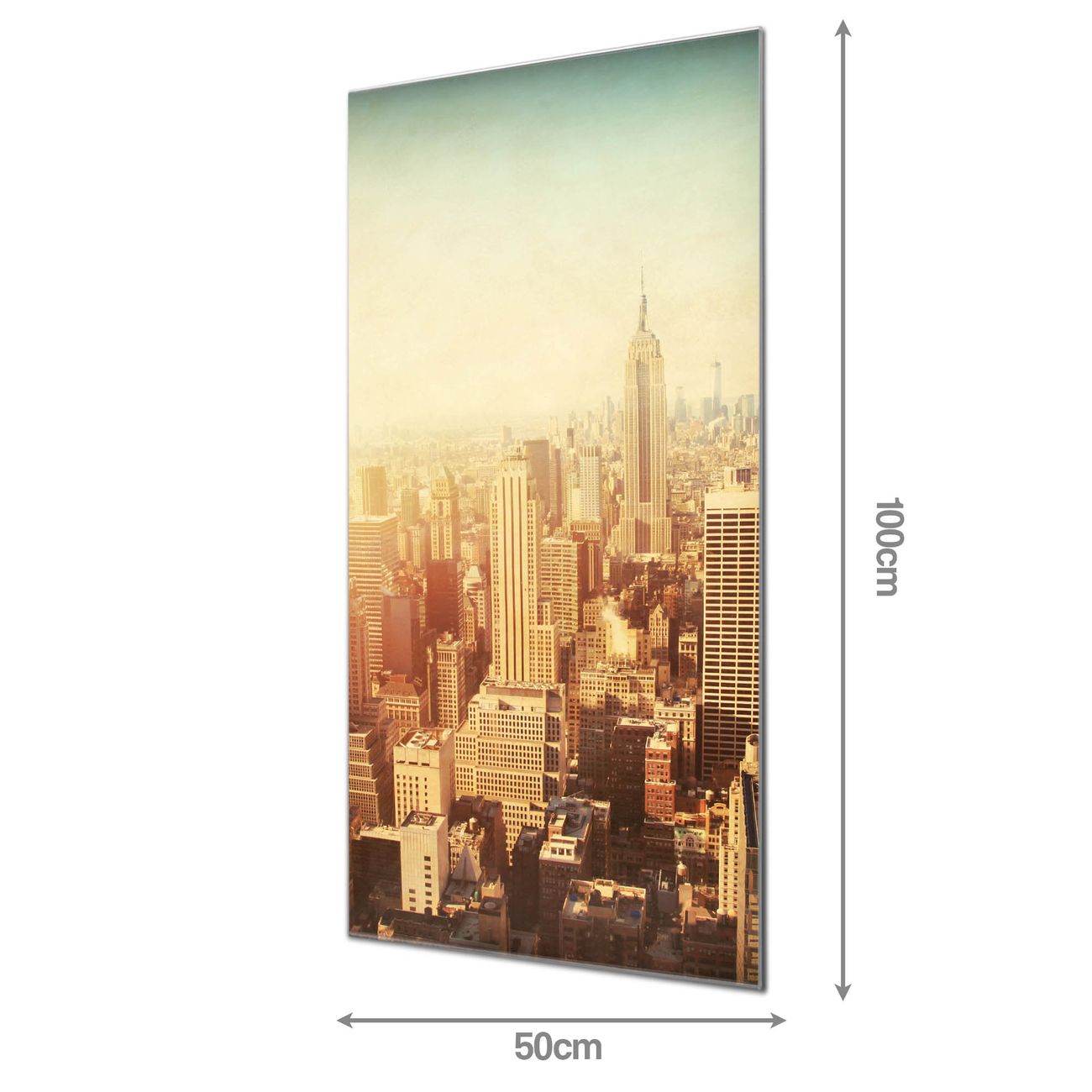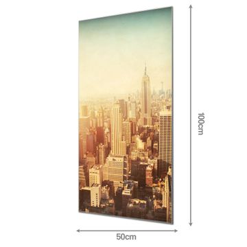 Material: 4mm Sicherheitsglas mit Metallrückwand Eigenschaften: beschreibbar, magnetisch, kratzfest Maße: 50x100x0,6cm, 7,50 kg schwer Motiv Nummer 12417 Manhattan 2 Zubehör: inklusive 4 Neodym-Magnete
