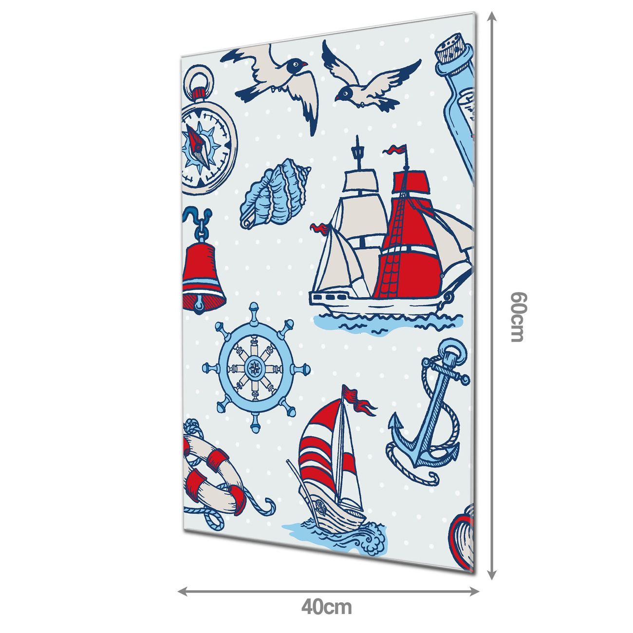 Material: 4mm Sicherheitsglas mit Metallrückwand Eigenschaften: beschreibbar, magnetisch, kratzfest Maße: 40x60x0,6cm, 3,60 kg schwer Motiv Nummer 10483 Schiff Ahoj Zubehör: inklusive 4 Neodym-Magnete
