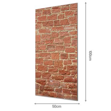 Material: 4mm Sicherheitsglas mit Metallrückwand Eigenschaften: beschreibbar, magnetisch, kratzfest Maße: 50x100x0,6cm, 7,50 kg schwer Motiv Nummer 10448 Mauerwerk Zubehör: inklusive 4 Neodym-Magnete