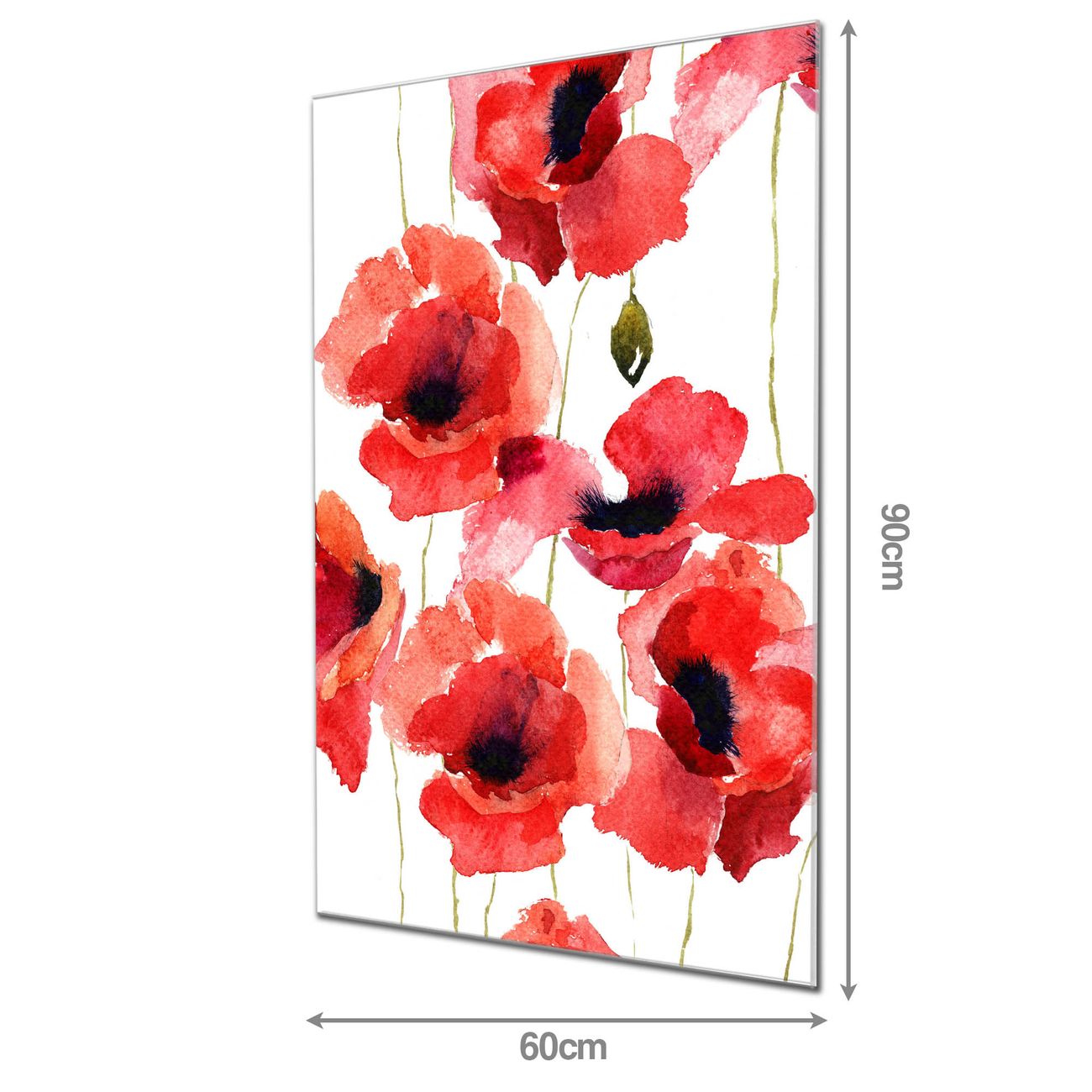 Material: 4mm Sicherheitsglas mit Metallrückwand Eigenschaften: beschreibbar, magnetisch, kratzfest Maße: 60x90x0,6cm, 8,10 kg schwer Motiv Nummer 12326 Mohn Aquarell Zubehör: inklusive 4 Neodym-Magnete