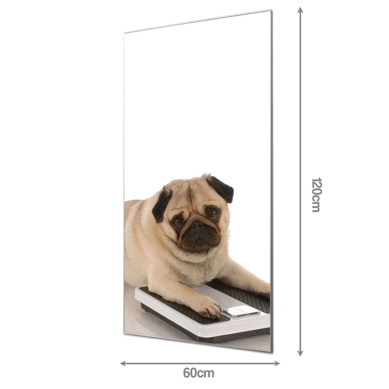 Material: 4mm Sicherheitsglas mit Metallrückwand Eigenschaften: beschreibbar, magnetisch, kratzfest Maße: 60x120x0,6cm, 10,80 kg schwer Motiv Nummer 10032 Mops Zubehör: inklusive 4 Neodym-Magnete