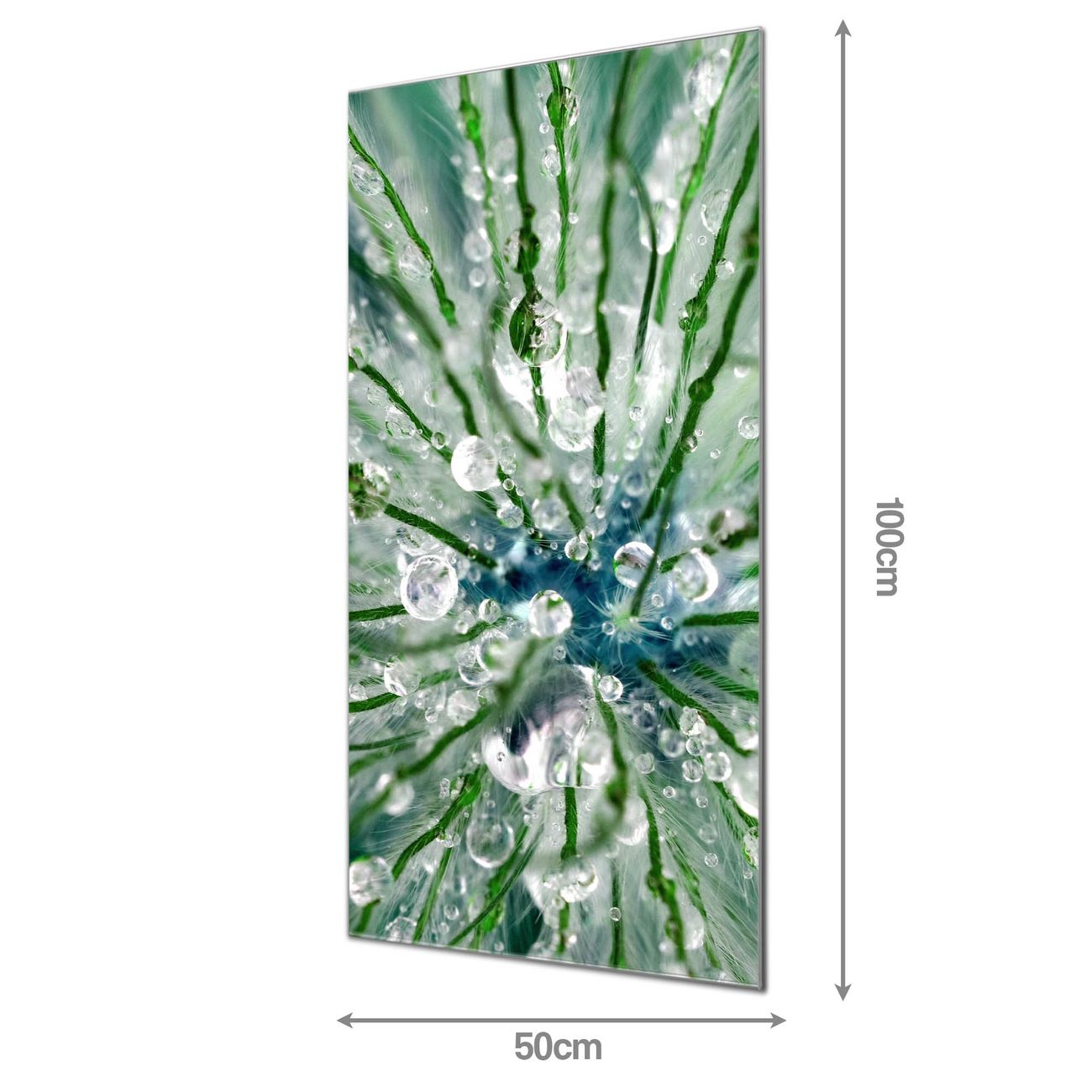 Material: 4mm Sicherheitsglas mit Metallrückwand Eigenschaften: beschreibbar, magnetisch, kratzfest Maße: 50x100x0,6cm, 7,50 kg schwer Motiv Nummer 12782 Blüte Mit Tautropfen Zubehör: inklusive 4 Neodym-Magnete