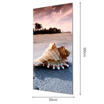 Material: 4mm Sicherheitsglas mit Metallrückwand Eigenschaften: beschreibbar, magnetisch, kratzfest Maße: 50x100x0,6cm, 7,50 kg schwer Motiv Nummer 10040 Muscheln Zubehör: inklusive 4 Neodym-Magnete