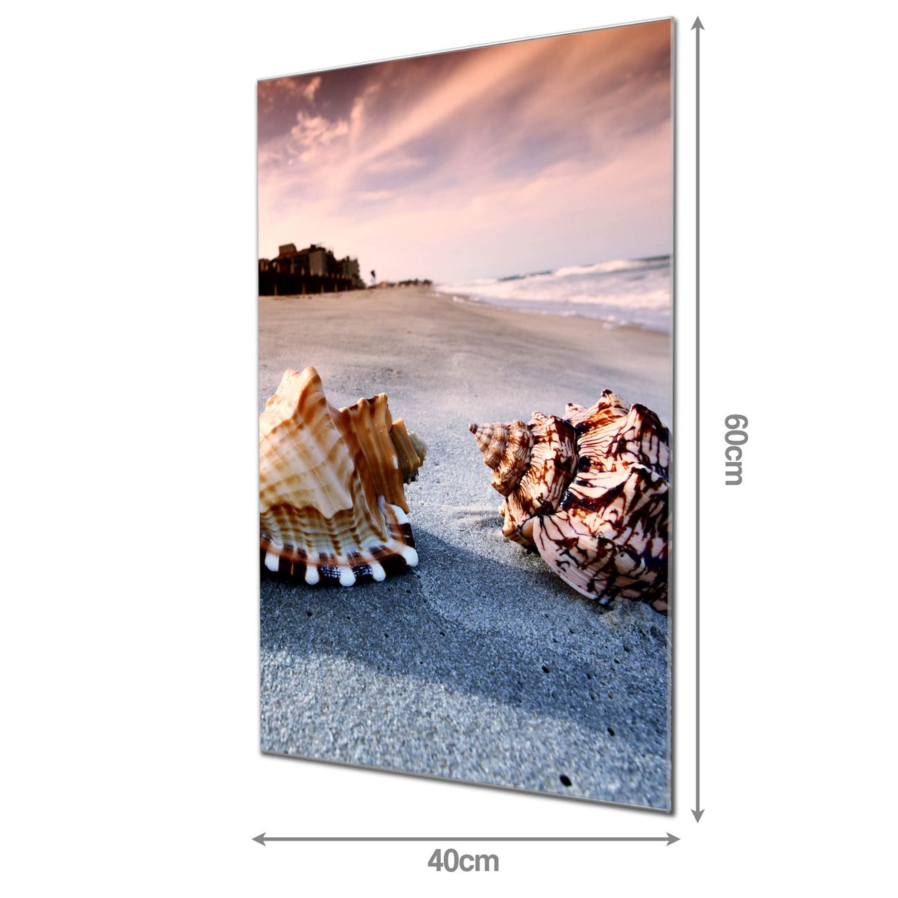 Material: 4mm Sicherheitsglas mit Metallrückwand Eigenschaften: beschreibbar, magnetisch, kratzfest Maße: 40x60x0,6cm, 3,60 kg schwer Motiv Nummer 10040 Muscheln Zubehör: inklusive 4 Neodym-Magnete