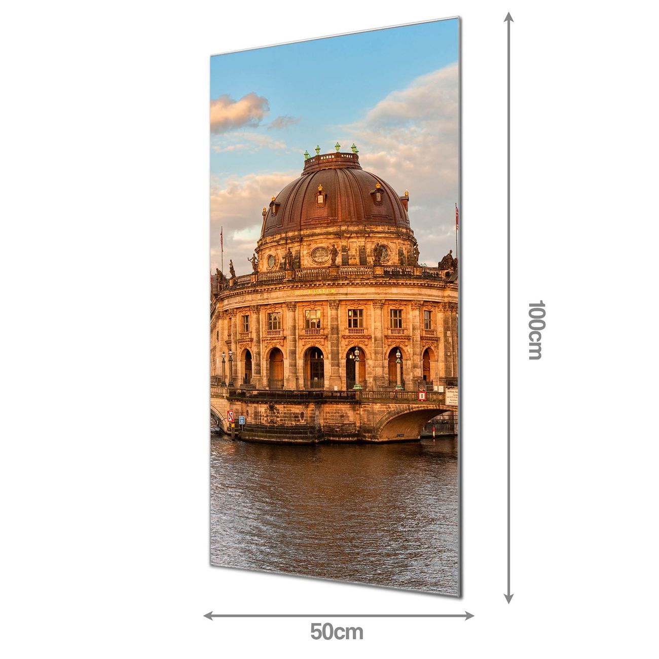 Material: 4mm Sicherheitsglas mit Metallrückwand Eigenschaften: beschreibbar, magnetisch, kratzfest Maße: 50x100x0,6cm, 7,50 kg schwer Motiv Nummer 12403 Museumsinsel Zubehör: inklusive 4 Neodym-Magnete