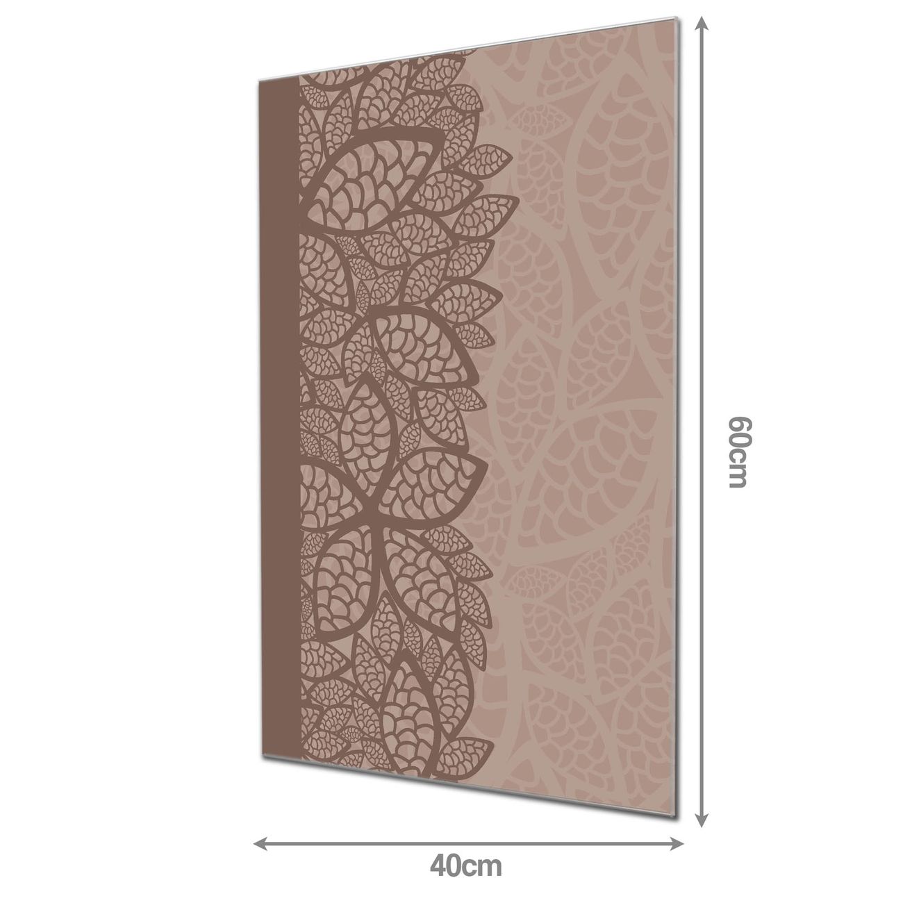Material: 4mm Sicherheitsglas mit Metallrückwand Eigenschaften: beschreibbar, magnetisch, kratzfest Maße: 40x60x0,6cm, 3,60 kg schwer Motiv Nummer 10341 Muster Blätter Zubehör: inklusive 4 Neodym-Magnete
