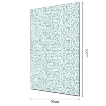 Material: 4mm Sicherheitsglas mit Metallrückwand Eigenschaften: beschreibbar, magnetisch, kratzfest Maße: 40x60x0,6cm, 3,60 kg schwer Motiv Nummer 10947 Muster Getupft Blau Zubehör: inklusive 4 Neodym-Magnete