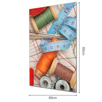 Material: 4mm Sicherheitsglas mit Metallrückwand Eigenschaften: beschreibbar, magnetisch, kratzfest Maße: 40x60x0,6cm, 3,60 kg schwer Motiv Nummer 10569 Nähen Zubehör: inklusive 4 Neodym-Magnete