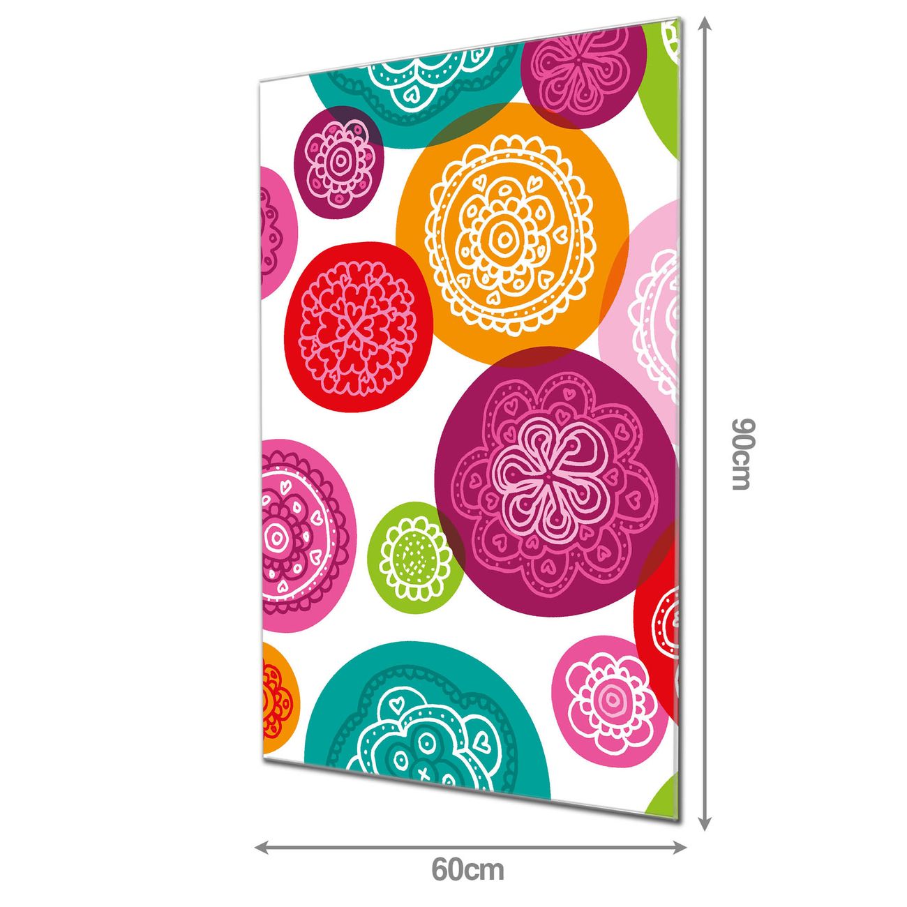 Material  4mm Sicherheitsglas mit Metallrückwand Eigenschaften  beschreibbar, magnetisch, kratzfest Maße  60x90x0,6cm, 8,10 kg schwer Motiv  Nummer 11419 Naive Blüten Zubehör  inklusive 4 Neodym-Magnete