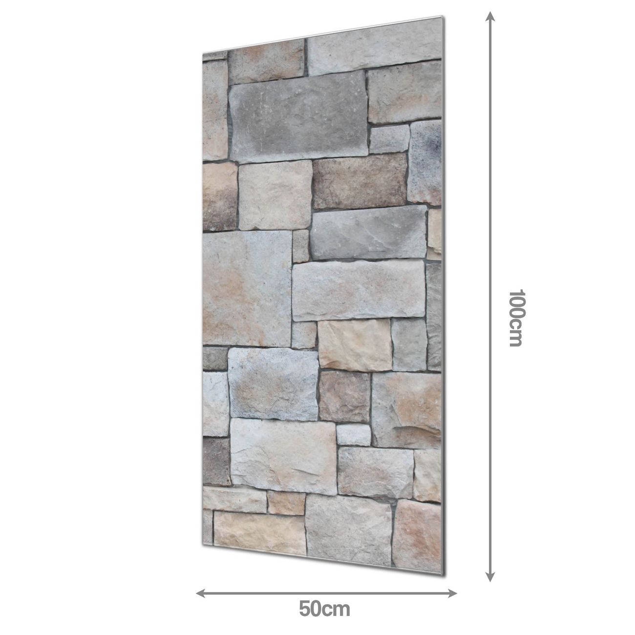 Material: 4mm Sicherheitsglas mit Metallrückwand Eigenschaften: beschreibbar, magnetisch, kratzfest Maße: 50x100x0,6cm, 7,50 kg schwer Motiv Nummer 12207 Natursteinmauer Zubehör: inklusive 4 Neodym-Magnete