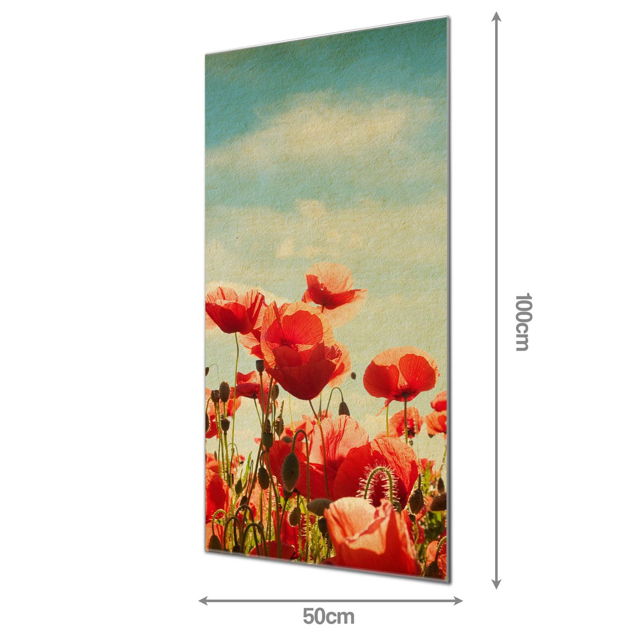 Material: 4mm Sicherheitsglas mit Metallrückwand Eigenschaften: beschreibbar, magnetisch, kratzfest Maße: 50x100x0,6cm, 7,50 kg schwer Motiv Nummer 10753 Oktobermohn Zubehör: inklusive 4 Neodym-Magnete