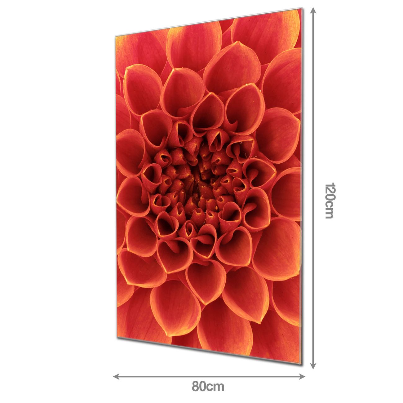 Material: 4mm Sicherheitsglas mit Metallrückwand Eigenschaften: beschreibbar, magnetisch, kratzfest Maße: 80x120x0,6cm, 14,40 kg schwer Motiv Nummer 12538 Orange Chrysantheme Zubehör: inklusive 4 Neodym-Magnete