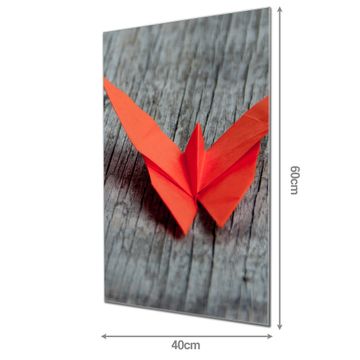 Material: 4mm Sicherheitsglas mit Metallrückwand Eigenschaften: beschreibbar, magnetisch, kratzfest Maße: 40x60x0,6cm, 3,60 kg schwer Motiv Nummer 10272 Origami Schmetterling Zubehör: inklusive 4 Neodym-Magnete
